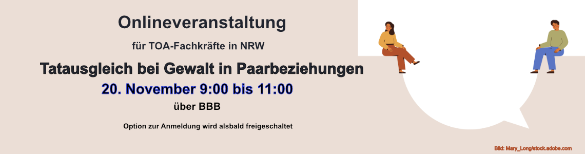 Das Seminar richtet sich an Fachkräfte im Bereich Täter-Opfer-Ausgleich bzw. Mediator:innen in Strafsachen in Nordrhein-Westfalen. Das Seminar wird im Rahmen einer landesspezifischen Förderung des Justizministeriums Nordrhein-Westfalen durchgeführt.